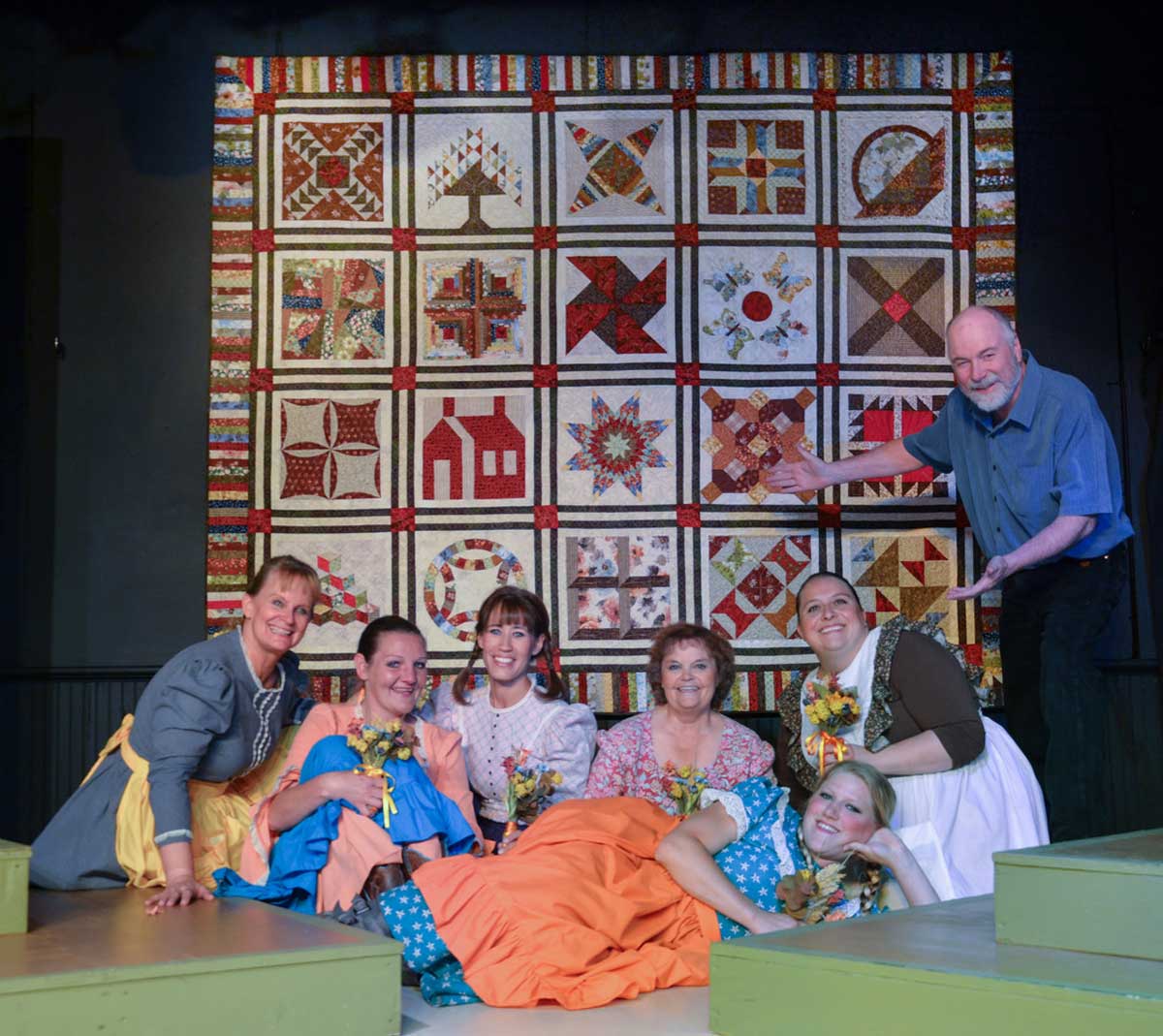 There is a musical, The Quilters, that features various quilt blocks that tell the story. Our little theater in La Veta, Colorado produced their version of the musical and I had the privilege of designing the quilt. Blocks from the quilt are used at various times throughout the production, and then the full quilt is revealed at the very end. That means that each block has to be made twice - one for the scenes, and the others put into the full quilt for display at the end. I was very thankful that members of the Colorado Quilt Council assisted by making blocks for this quilt. I assembled it, and Cyndi McChesney quilted it. The quilt was raffled and the proceeds benefited the performing arts in our little town.