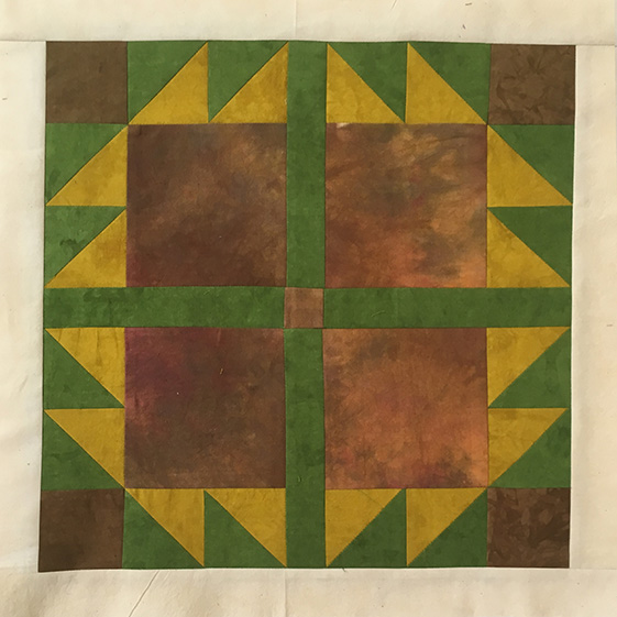 Scroll Down to Download Free Block Patterns The Back Story In 2015 I enjoyed designing the blocks for our local production of, The Quilters. Most of the blocks in this quilt are used to intertwine the stories of pioneer women. The play reveals their hardships, their celebrations, and their tragedies. I chose fabrics for the theatrical quilt to represent fabrics similar to fabrics that were from the pioneer days. The quilt shown here is the actual quilt from the show. It is presented horizontally because the stage was not large enough for it to be presented vertically. Yardages Yardages needed for the quilt are not calculated. For those using commercial fabric, I suggest obtaining 4-5 yards of background fabric. Then, consider using coordinated scraps for the rest of the quilt to provide variety and remove any worry of running out of a particular fabric. If you run low on Blendables fabric, simply order more. Blendables will remain in stock, or we will dye more for you right away. You won’t run out of this special fabric.
