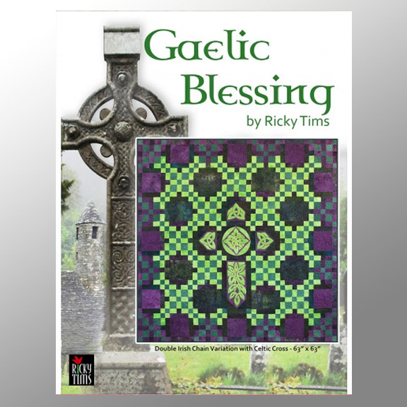 Gaelic Blessing Lap Quilt 63" x 63" POPULAR/Irish Lovers This Double Irish chain variation features a simple appliquéd Celtic cross. The border is part of the piecing. Rotary cutting—fast and fun. Great class project! #RTIP-GB